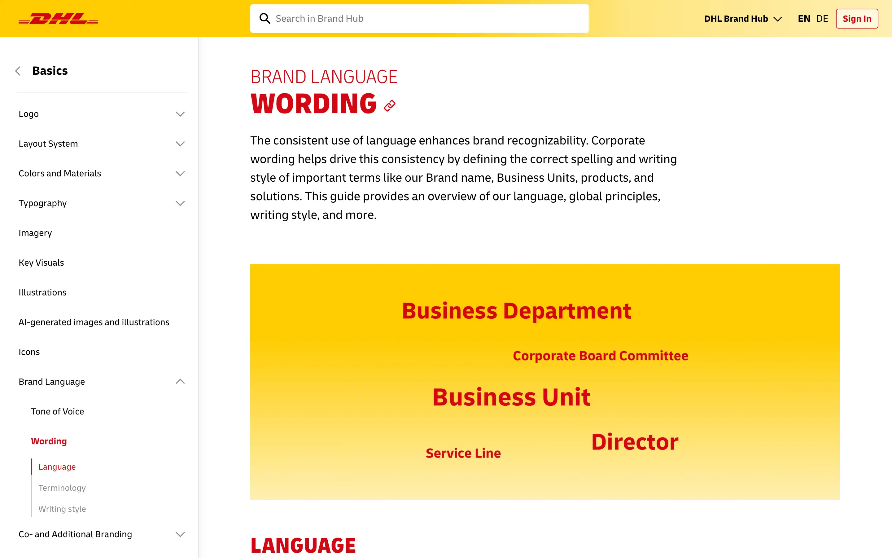 DHL’s wording guidelines focus on clear, concise, and culturally sensitive language to ensure consistent brand communication.