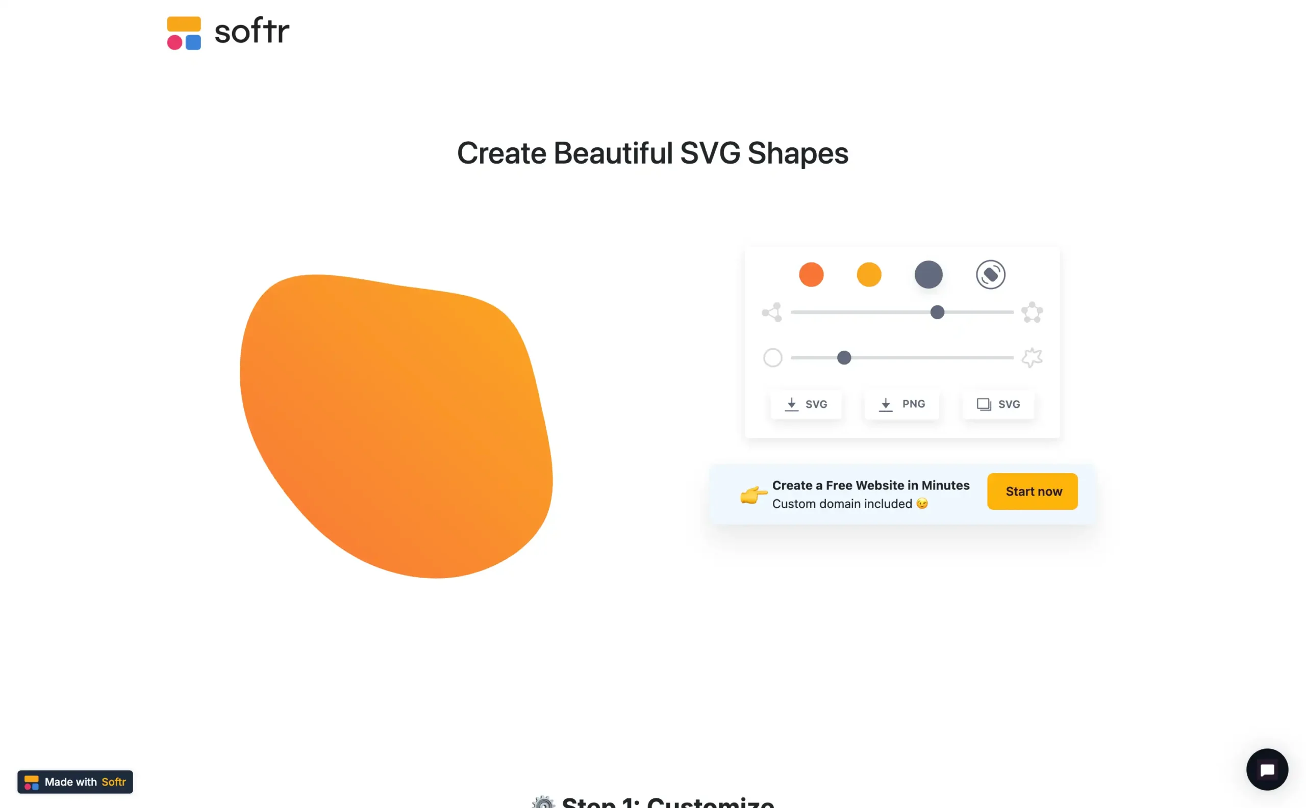 SVG Shape Generator is a free online tool created by Softr that allows users to generate random organic-looking shapes. It provides options to customize the number of angles, complexity, and colors/gradients of the shapes. Users can randomize until they find a shape they like, then download it as an SVG or PNG or copy the code.